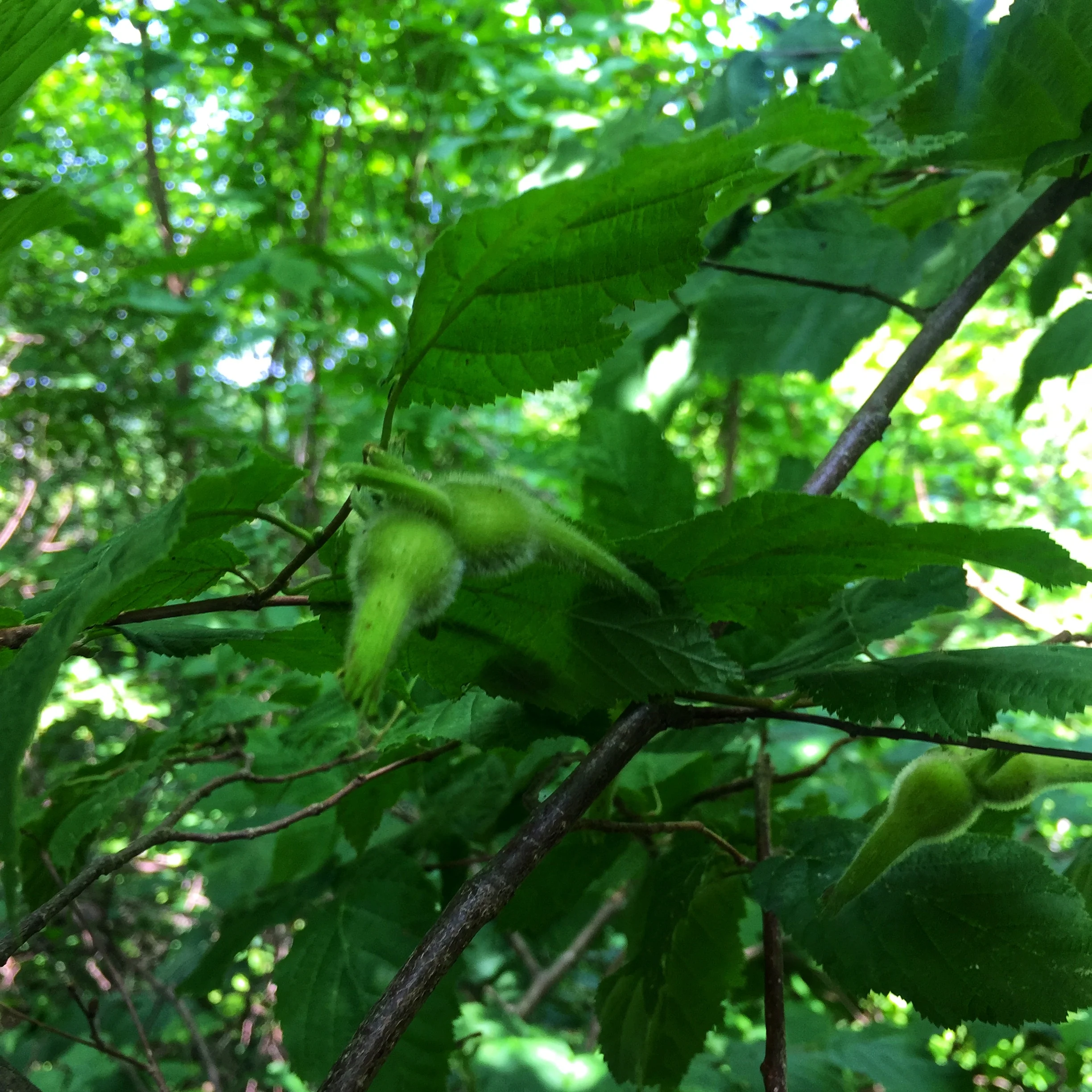 La piece de resistance: beaked hazelnuts!! The modern northern woodlands lack many of the edible nut trees that sustained generations on this land before the colonists cut down the forest and brought insects and disease that continue to attack some of our most valued trees. I was thrilled to find a few beaked hazelnut trees on our woods today and will keep an eye on the nuts to grab a few ripe ones before the squirrels can hide them all away.
